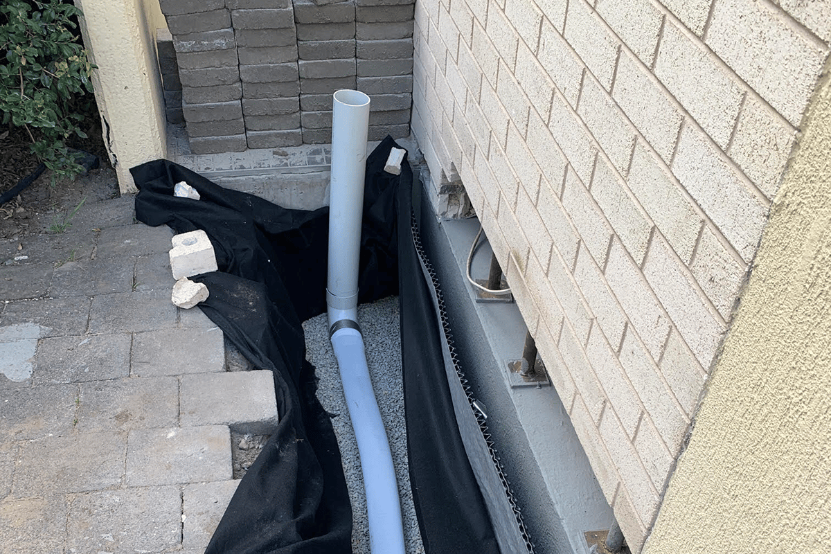 There are ways to prevent this from happening, but for the new stormwater installation to work the wall has to be exposed outside. Dig right down to the concrete footing of the property. A channel will need to be created to direct any water away from the property. You can control the flow of water around the house with the right installations. When concealing all the new plumbing you have to consider what materials you put back in so that the new system is functional over a long period of time.